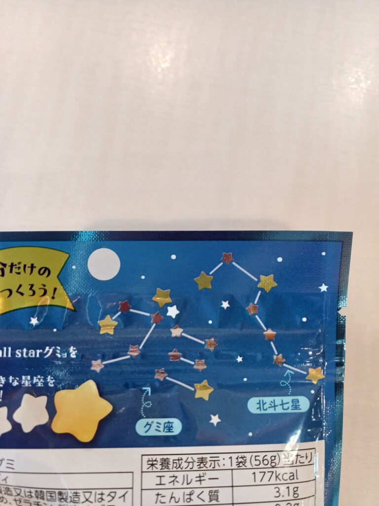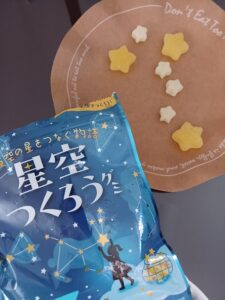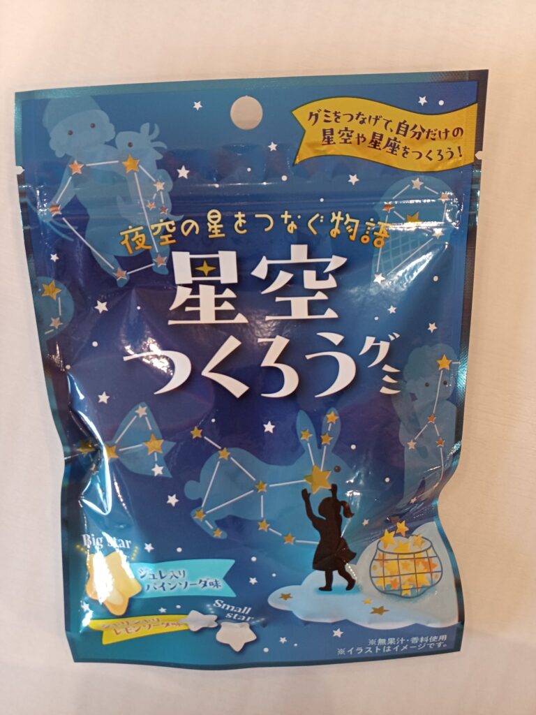 『星空つくろうグミ』星のかたちが可愛らしいグミです。大きな星と小さな星を並べて、星座を作ることができるんです!